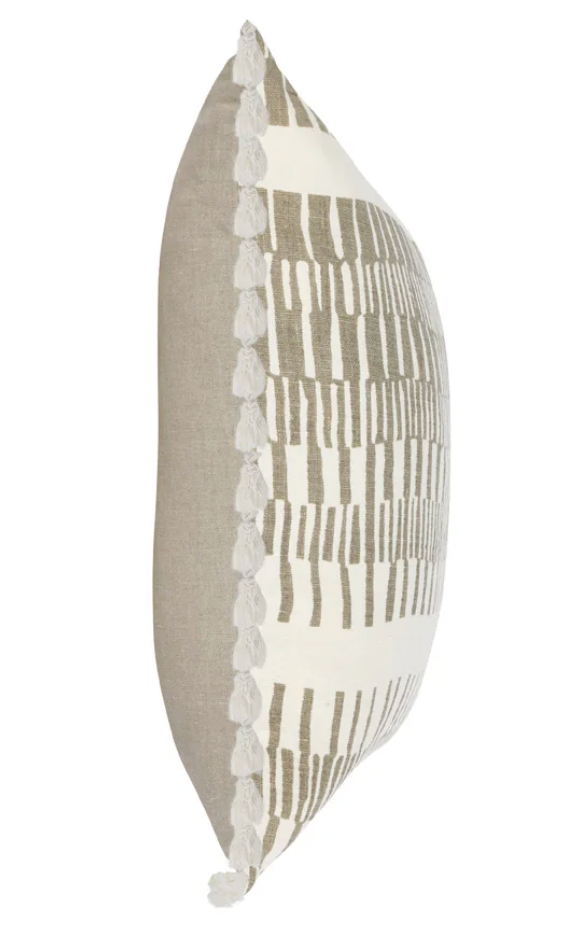 COJIN DE LINO COLOR CRUDO CON ESTAMPADO CAFE CLARO