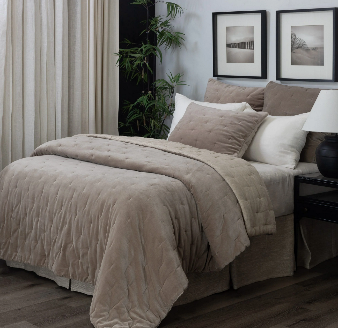 COLCHA REVERSIBLE DE TERCIOPELO Y LINO