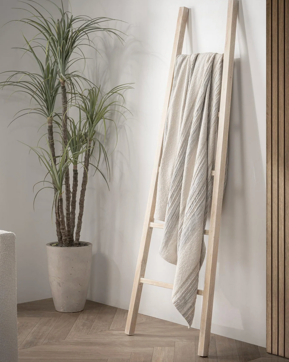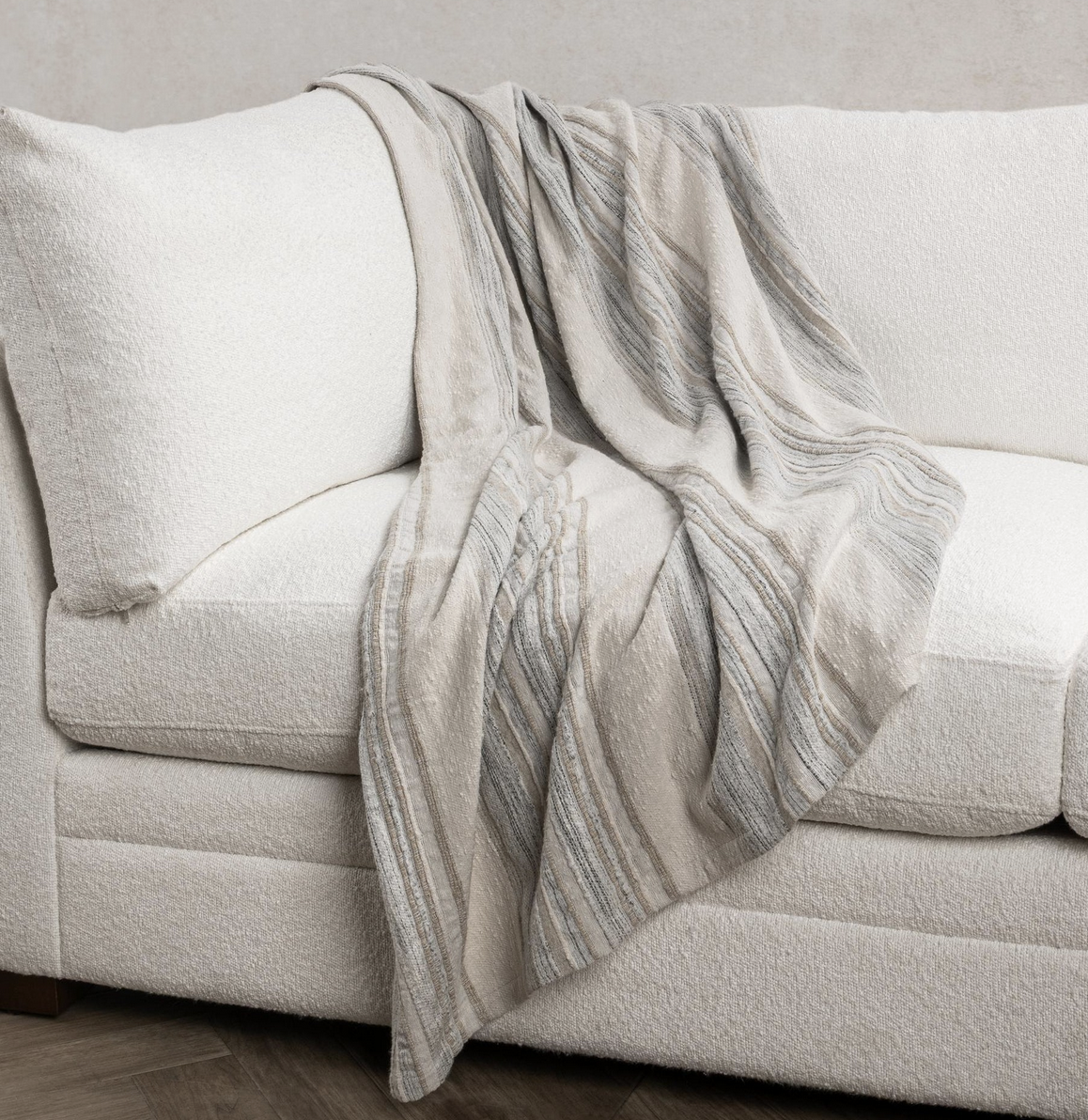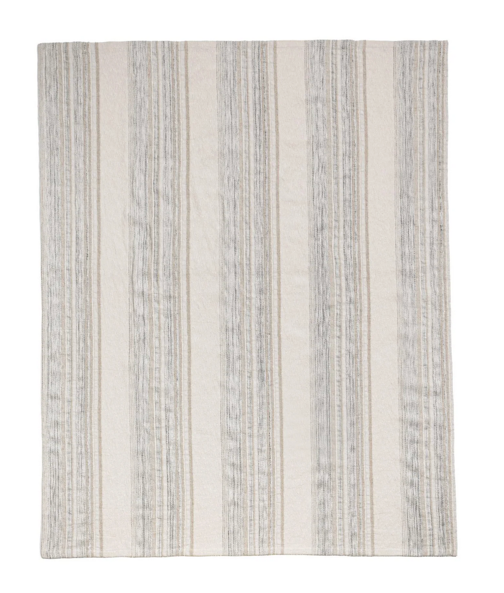 FRAZADA DE ALGONON EN RAYAS GRIS CON BEIGE
