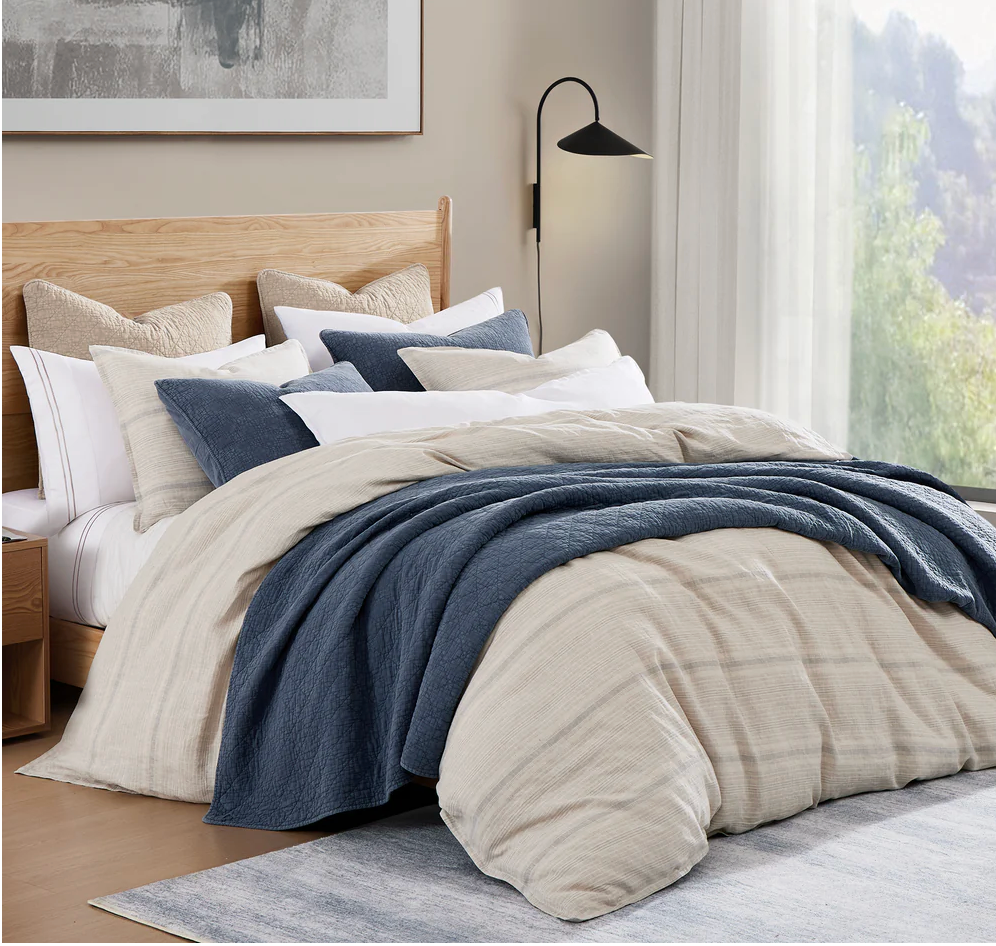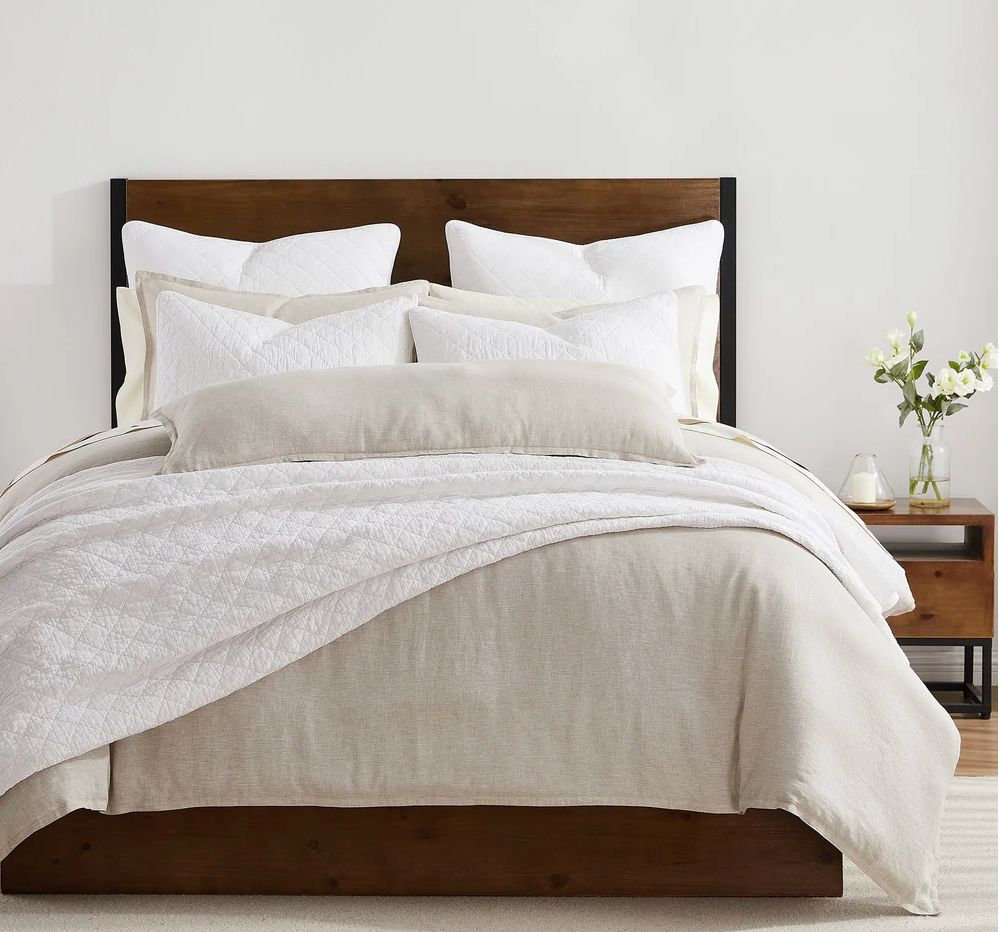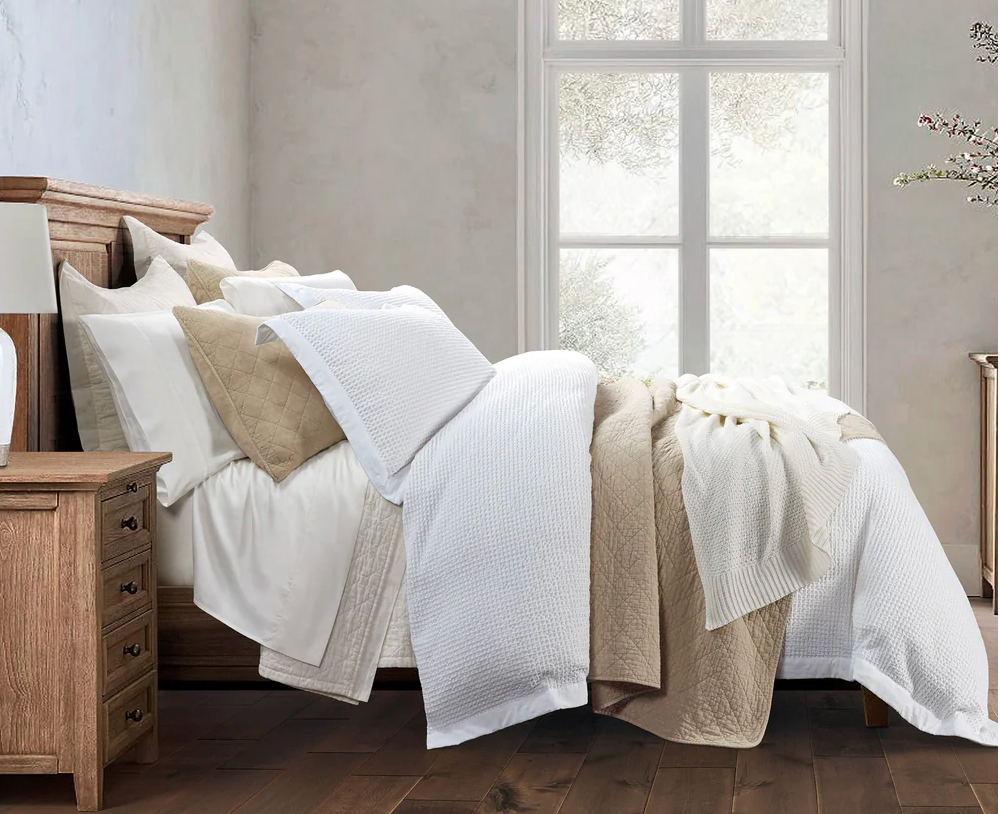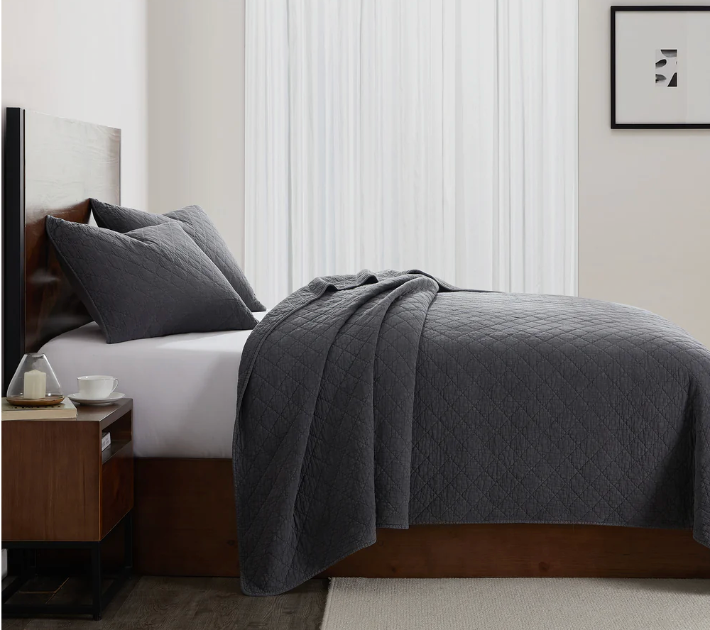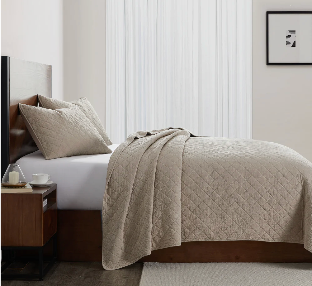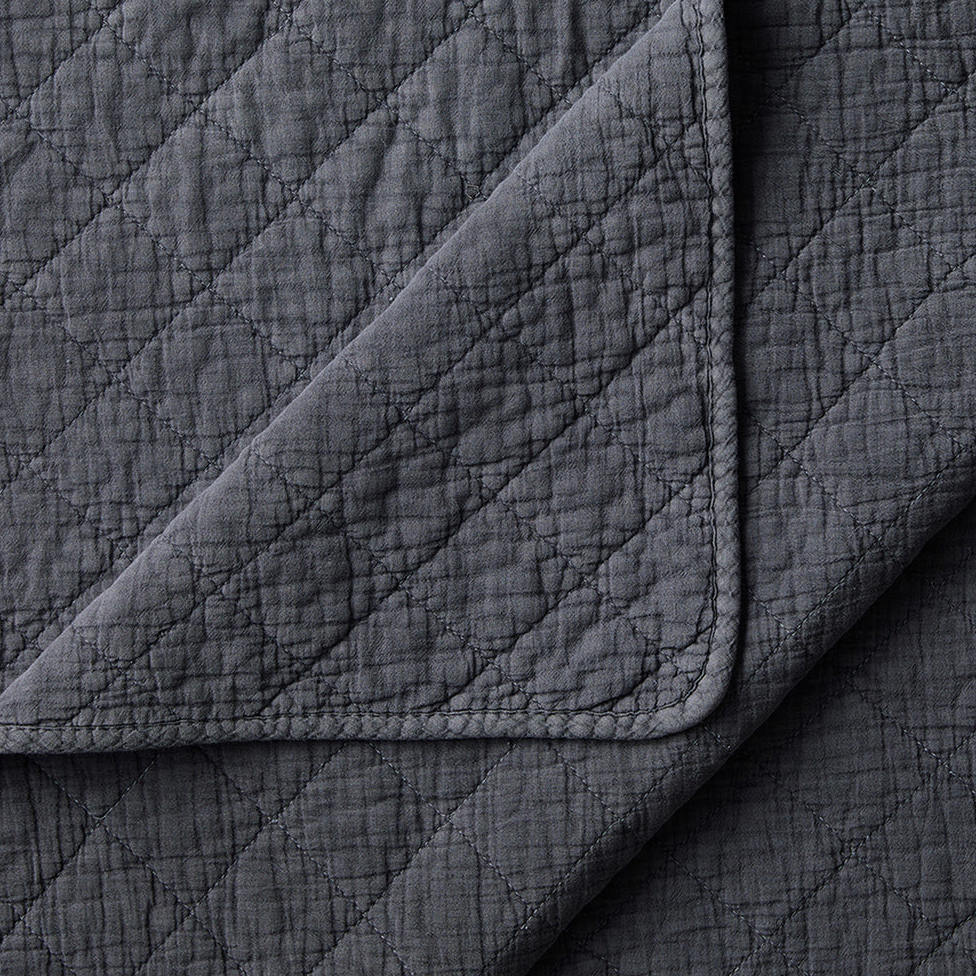 - Juego de cama de algodón 100% con acolchado de rombos y acabado deslavado. Ligero y versátil, funciona como capa superior en verano o intermedia en invierno.