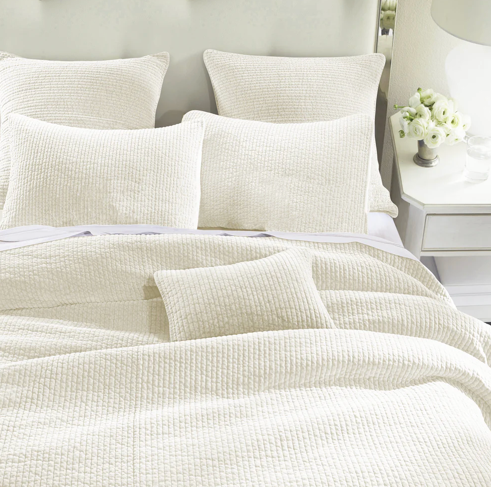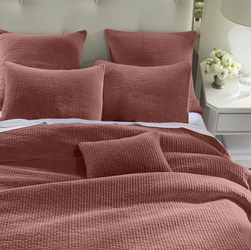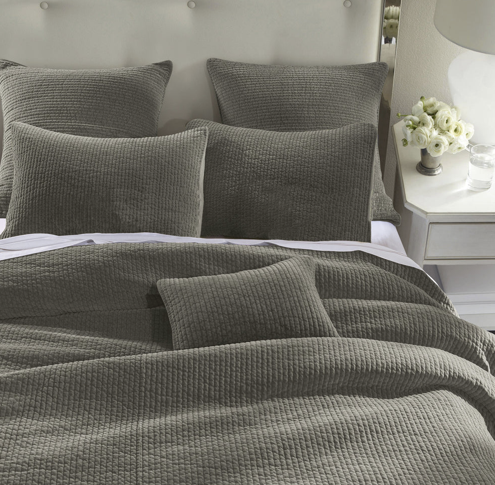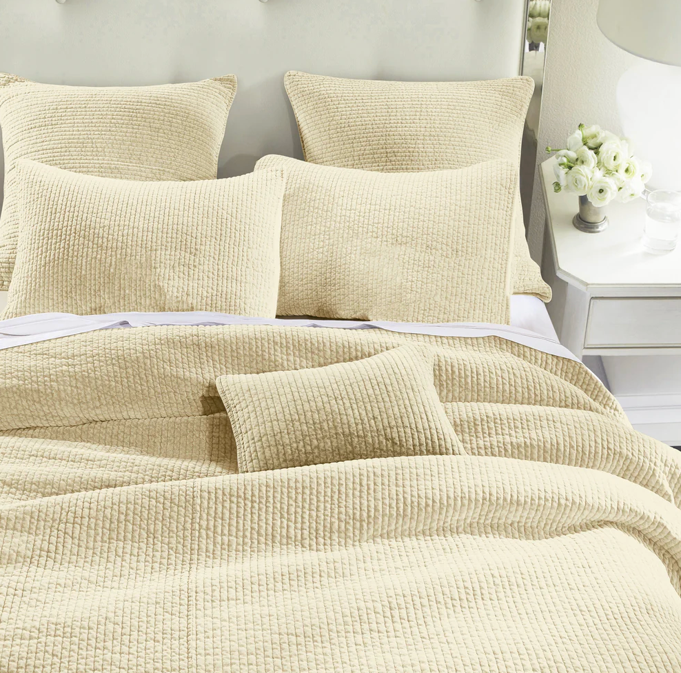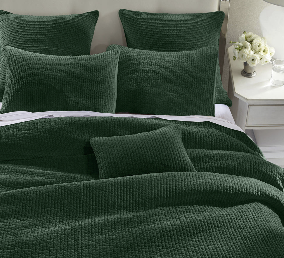 - Colcha de terciopelo deslavado en 100% algodón con acolchado acanalado moderno. Suave y resistente, ideal como pieza ligera en verano o complemento abrigador en invierno. Disponible en diversos tonos neutros y brillantes.