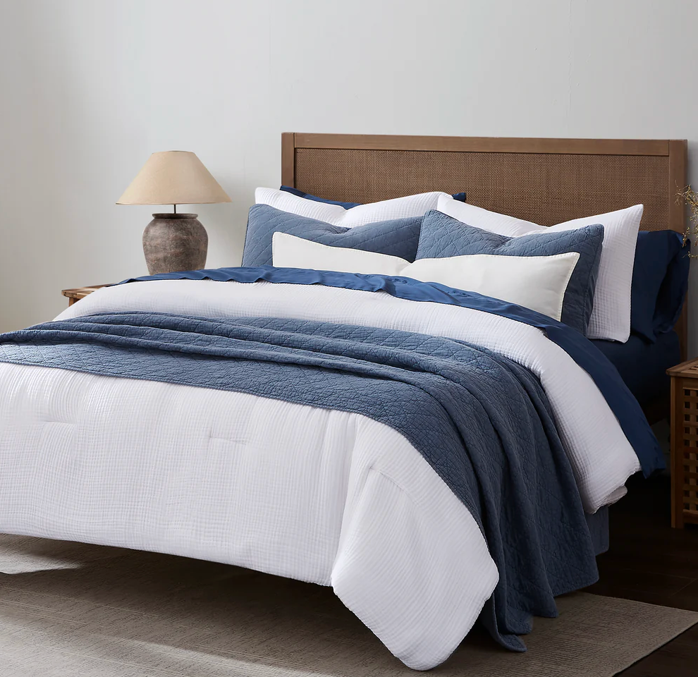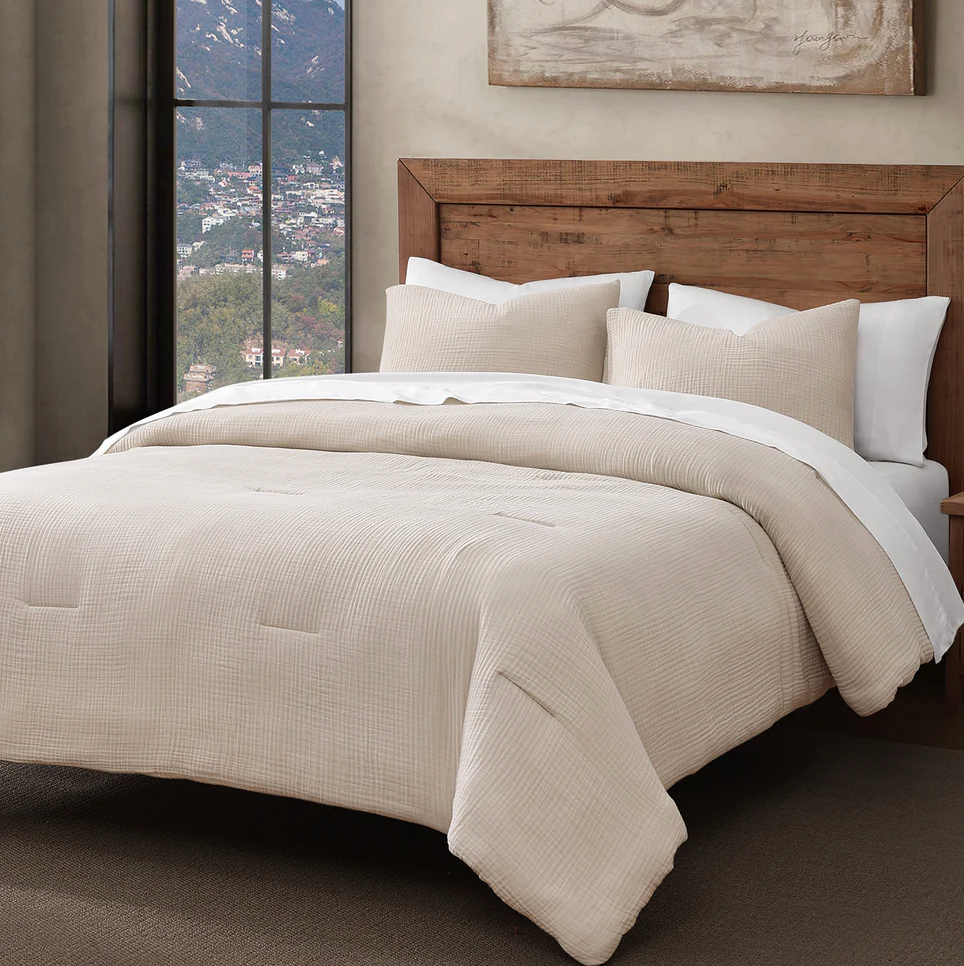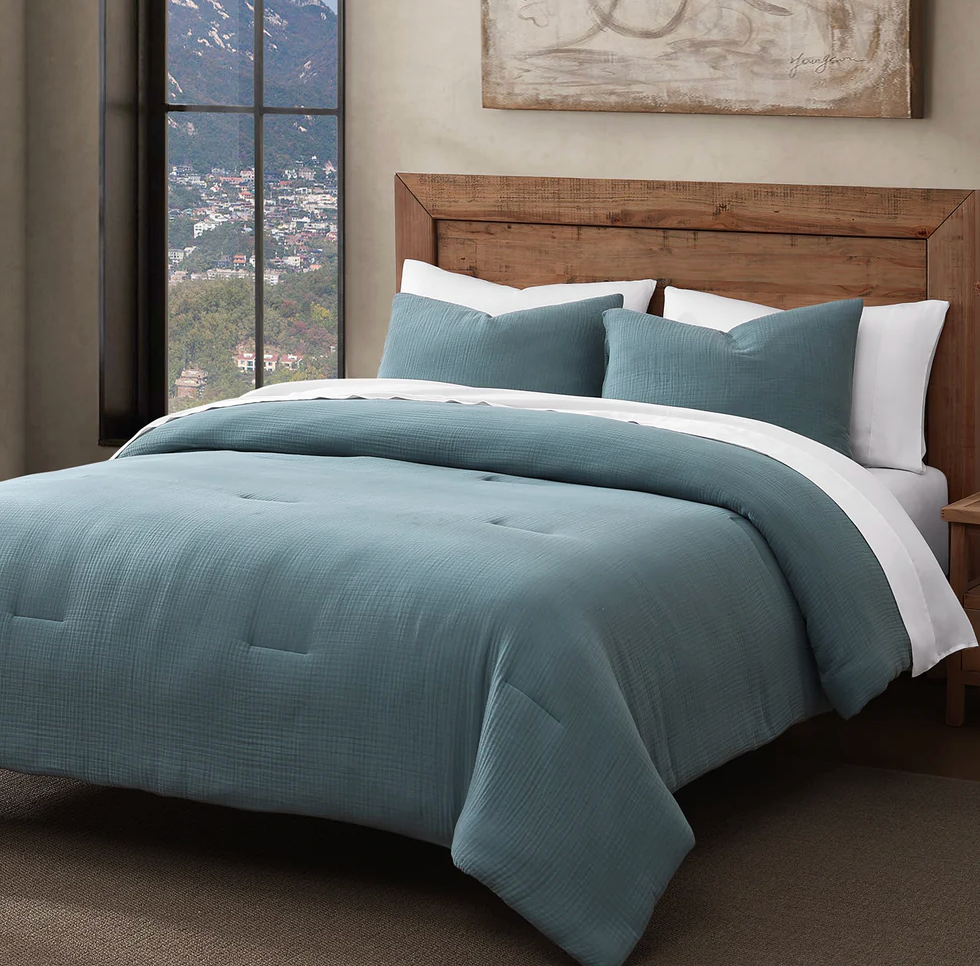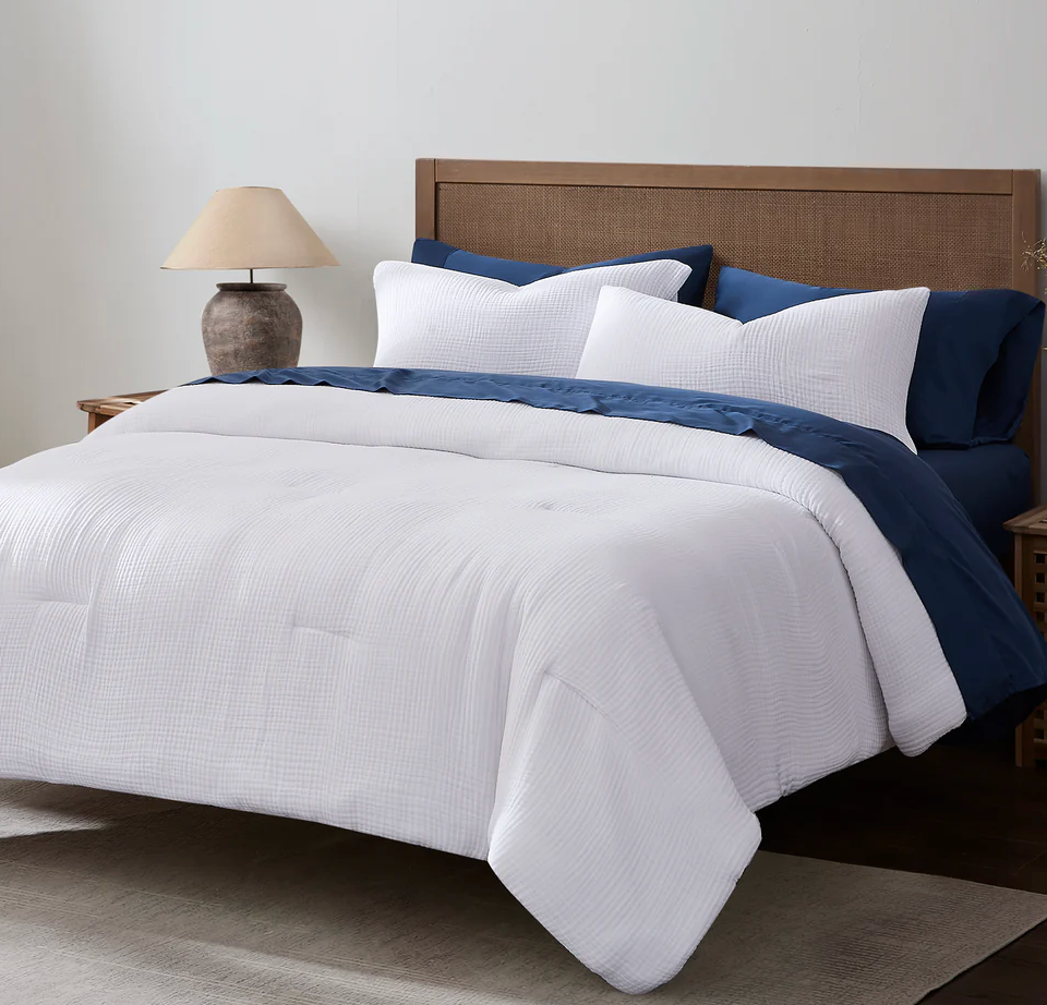 - Juego de cama esponjoso en velo de algodón suave y ligero con construcción de gasa en la parte delantera y algodón de calidad en el reverso.